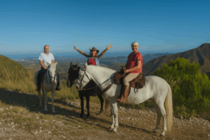 The Sierra Blanca tour is available all year round morning or evening and is a 3hr trail ride. A wonderful introduction to the countryside around Los llanos here in Coin, where we ride up and over mountains to a beautiful viewpoint where we have stunning views down to the coast, the views are truly breathtaking so a camera is a must.